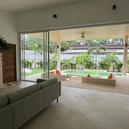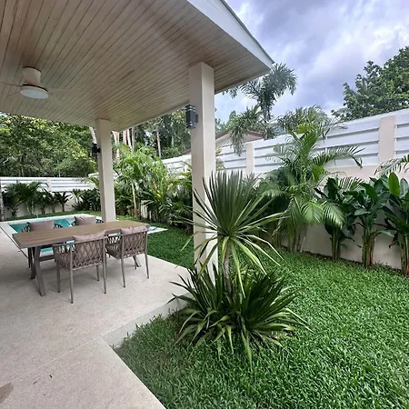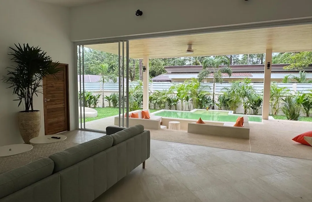 Willa Casa Tropical Luxe Thongsala dysponuje tarasem z widokiem na basen oraz miejscem do siedzenia i basenem.